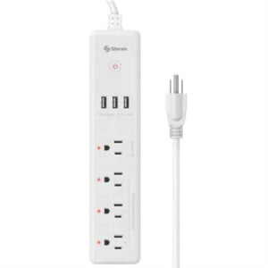 Barra Steren Multicontacto Wi-Fi de 4 Salidas Horizontales y Triple Cargador USB Color Blanco