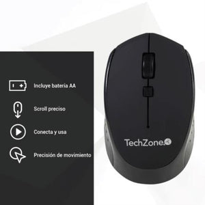 Mouse Óptico TechZone Inalámbrico 800 a 1600dpi Ajustable 3 Botones Ambidiestro Win/MAC Color Negro